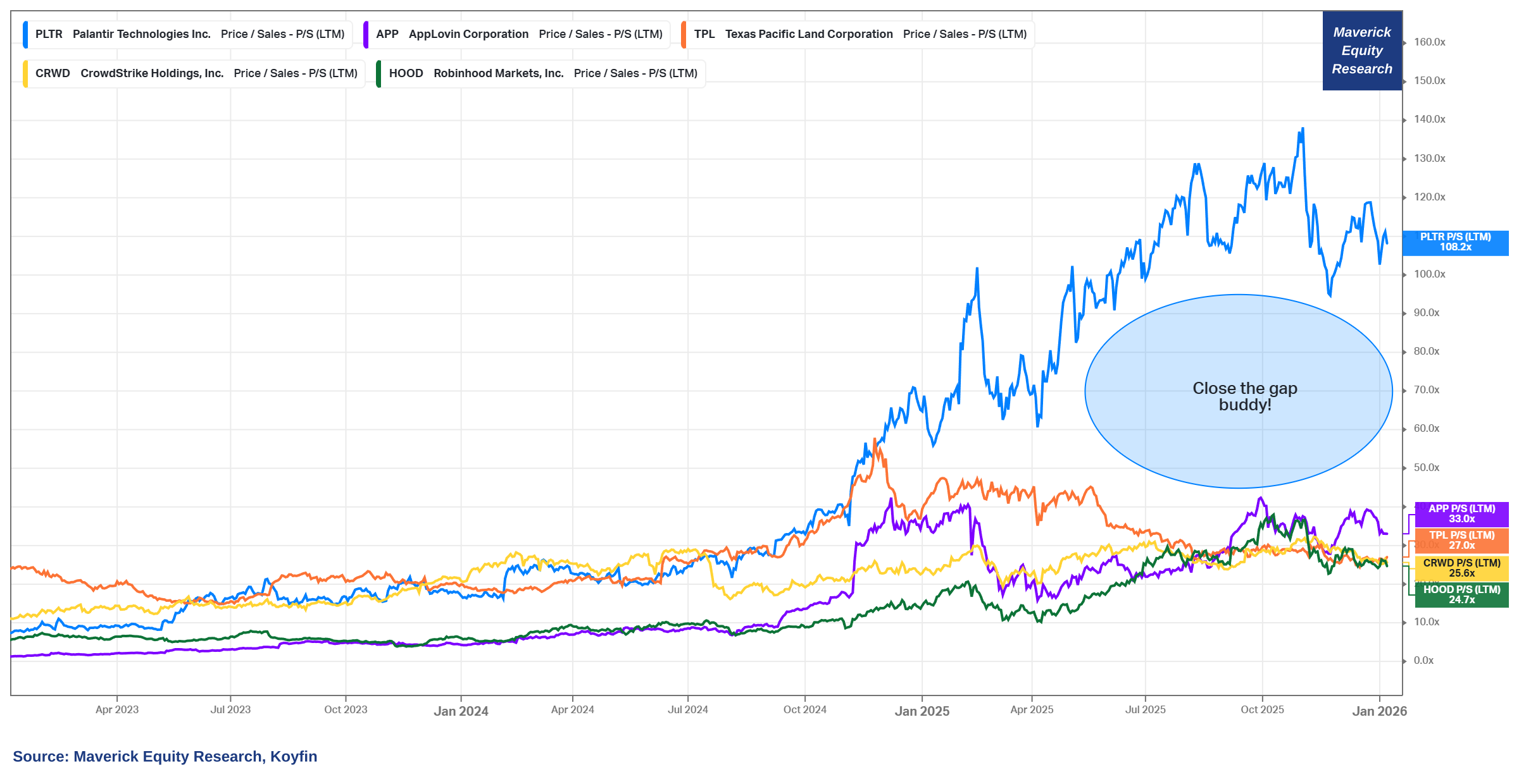 👉 = 3.25x greater than the 2nd highest P/S ratio in the S&P 500 which belongs to AppLovin (APP) at 33x