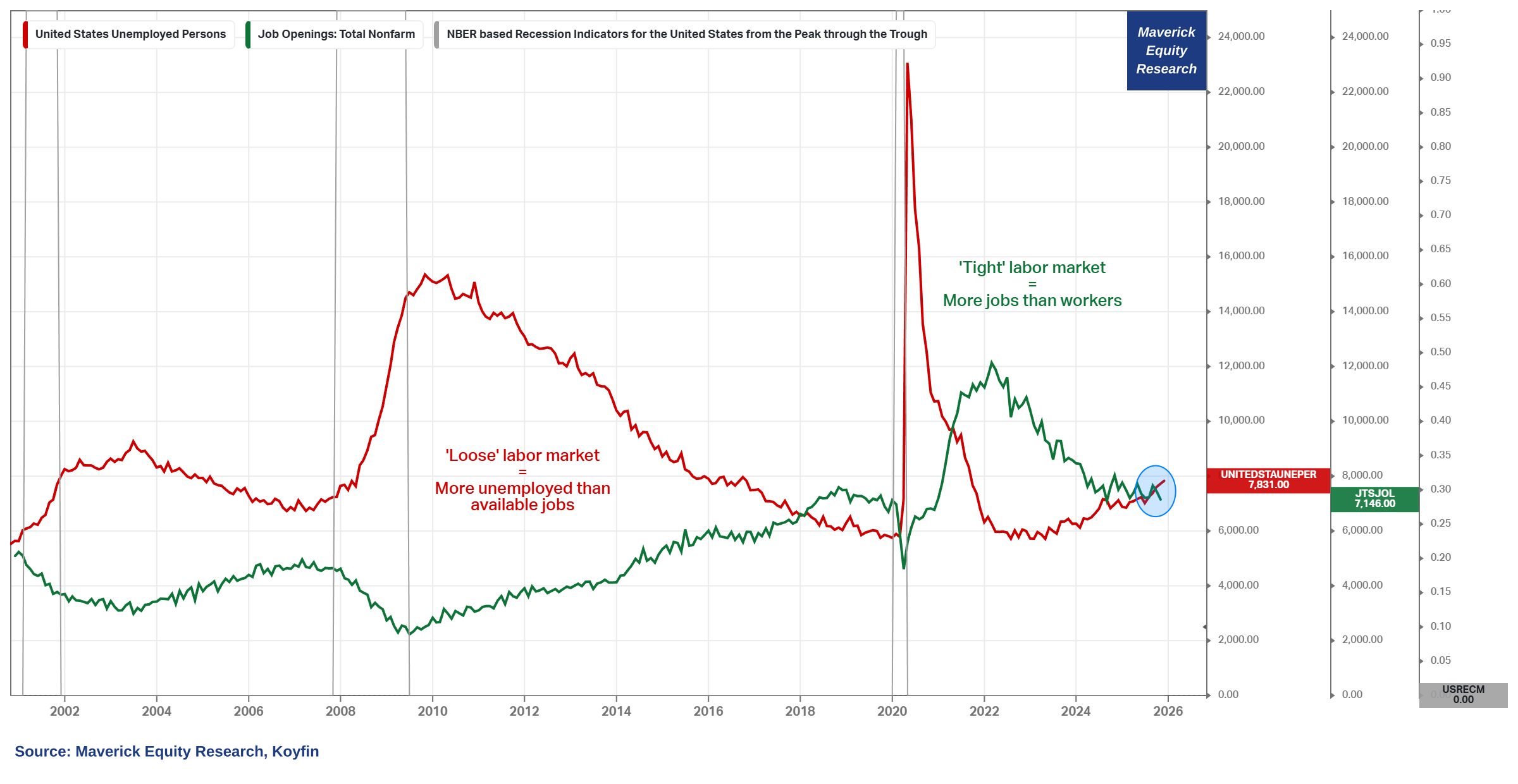 👉 2026 will be a year where the labor market will likely become more ‘loose’ = more unemployed people than job openings