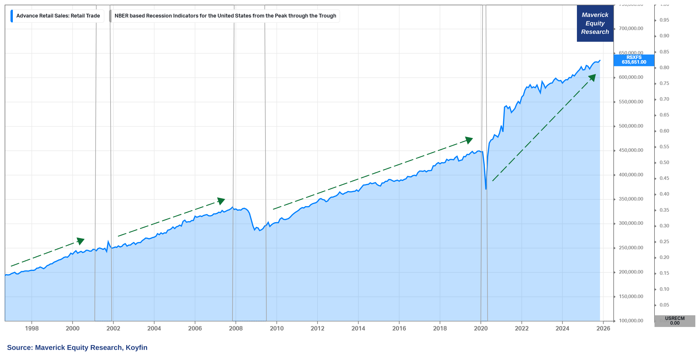 👉 up & up with the occasional bigger or smaller recession dips: +0.6% from the previous month for a $635.65 billion total