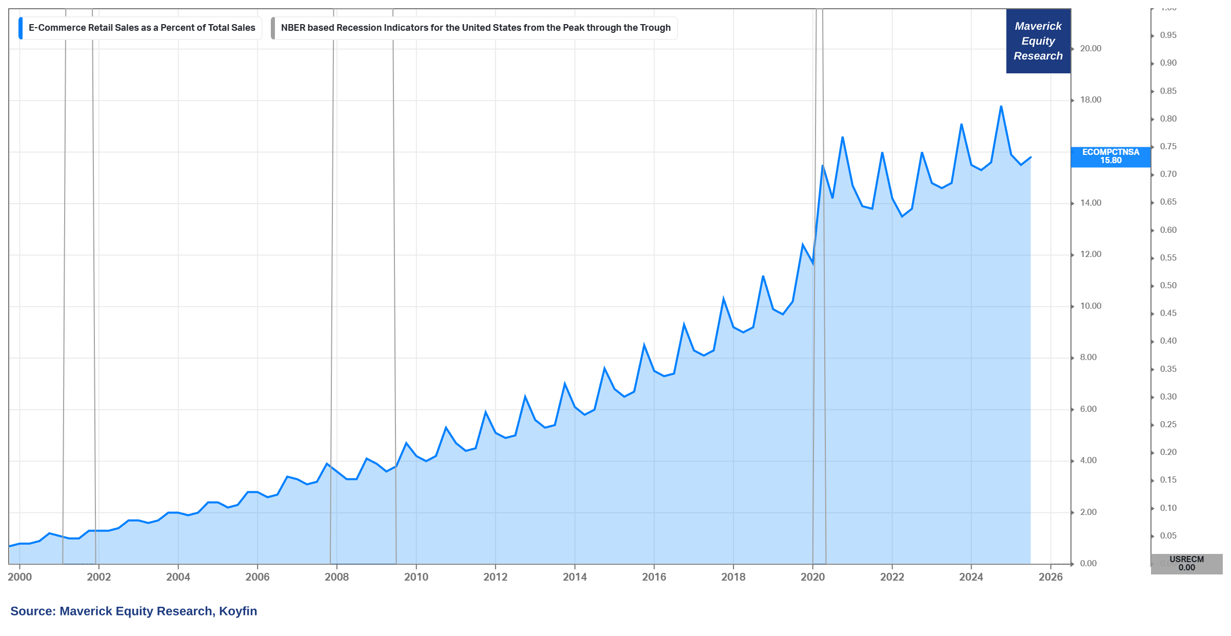 👉 E-Commerce Retail Sales as a % of Total Sales is quite on a trend since 1999